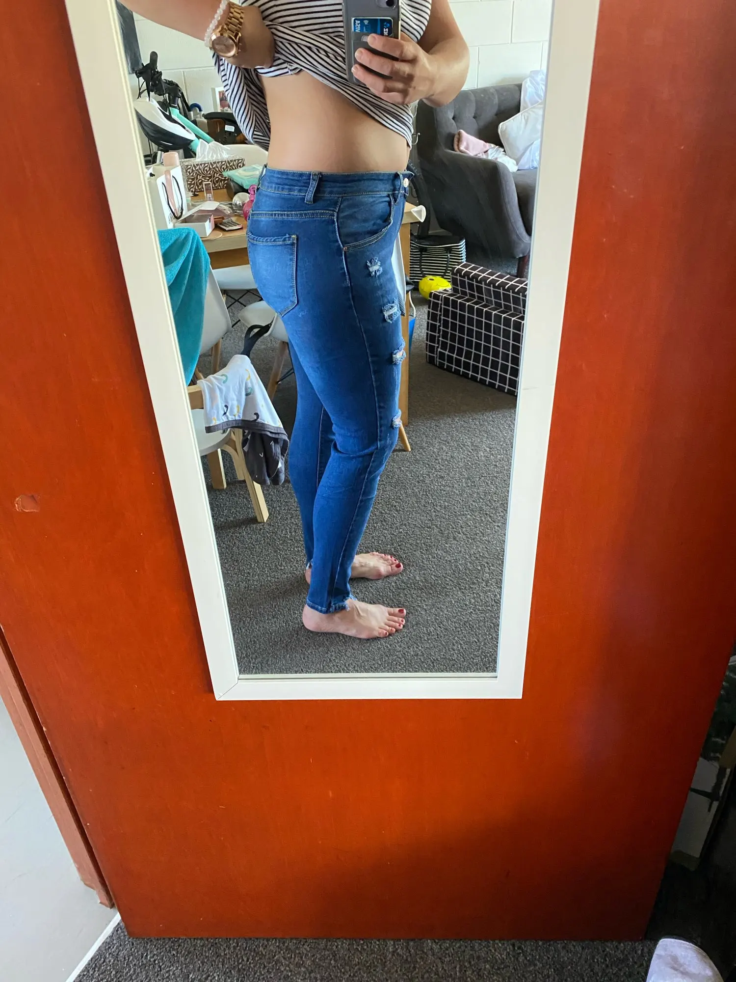 Заказ свой получила очень быстро. Заказам почти довольна. Джинсы к сожалению великоваты.