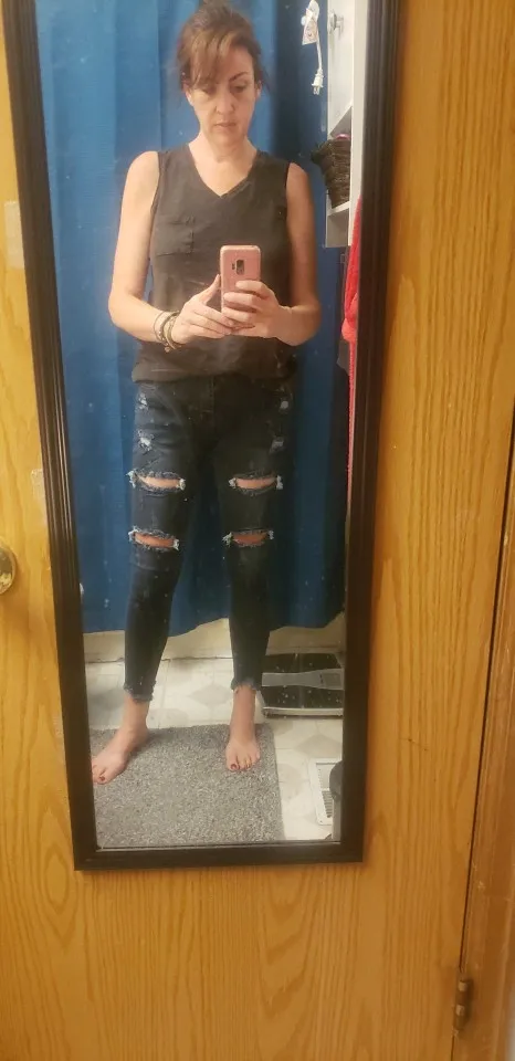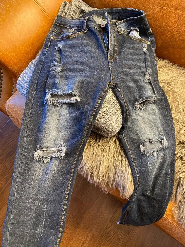 They are way too big. The fabric is all the same color not worn & distressed like the ones in the picture I ordered & they are too long!!!
