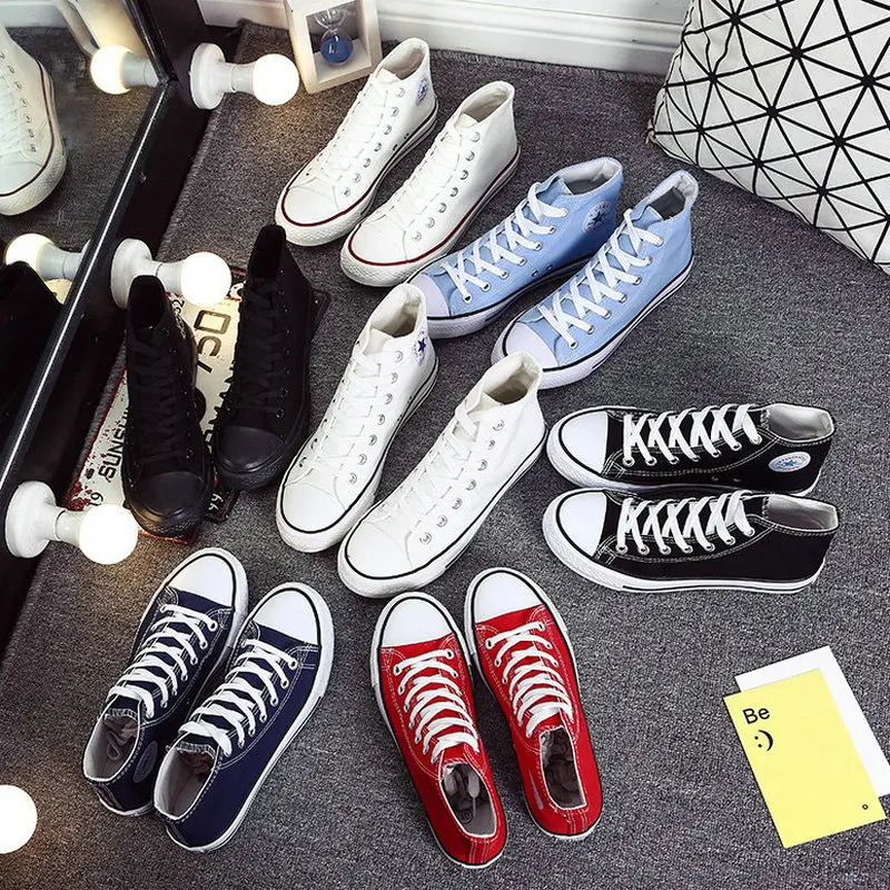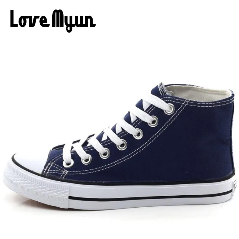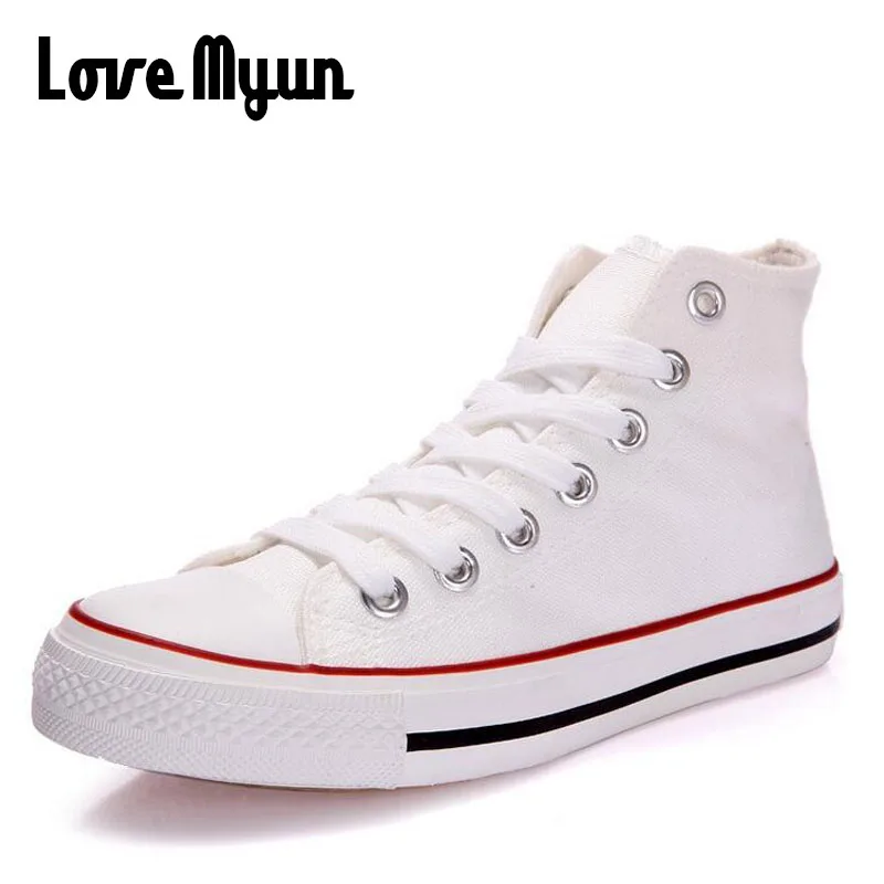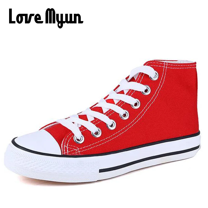 Мужские парусиновые туфли, высокие кеды, плоская подошва, повседневная обувь для пар, цвет белыйкрасныйсиний