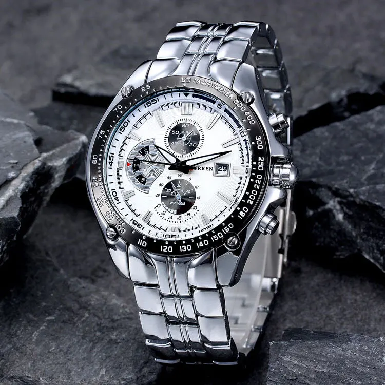 Часы мужские кварцевые, водонепроницаемые, стальные, с большим циферблатом