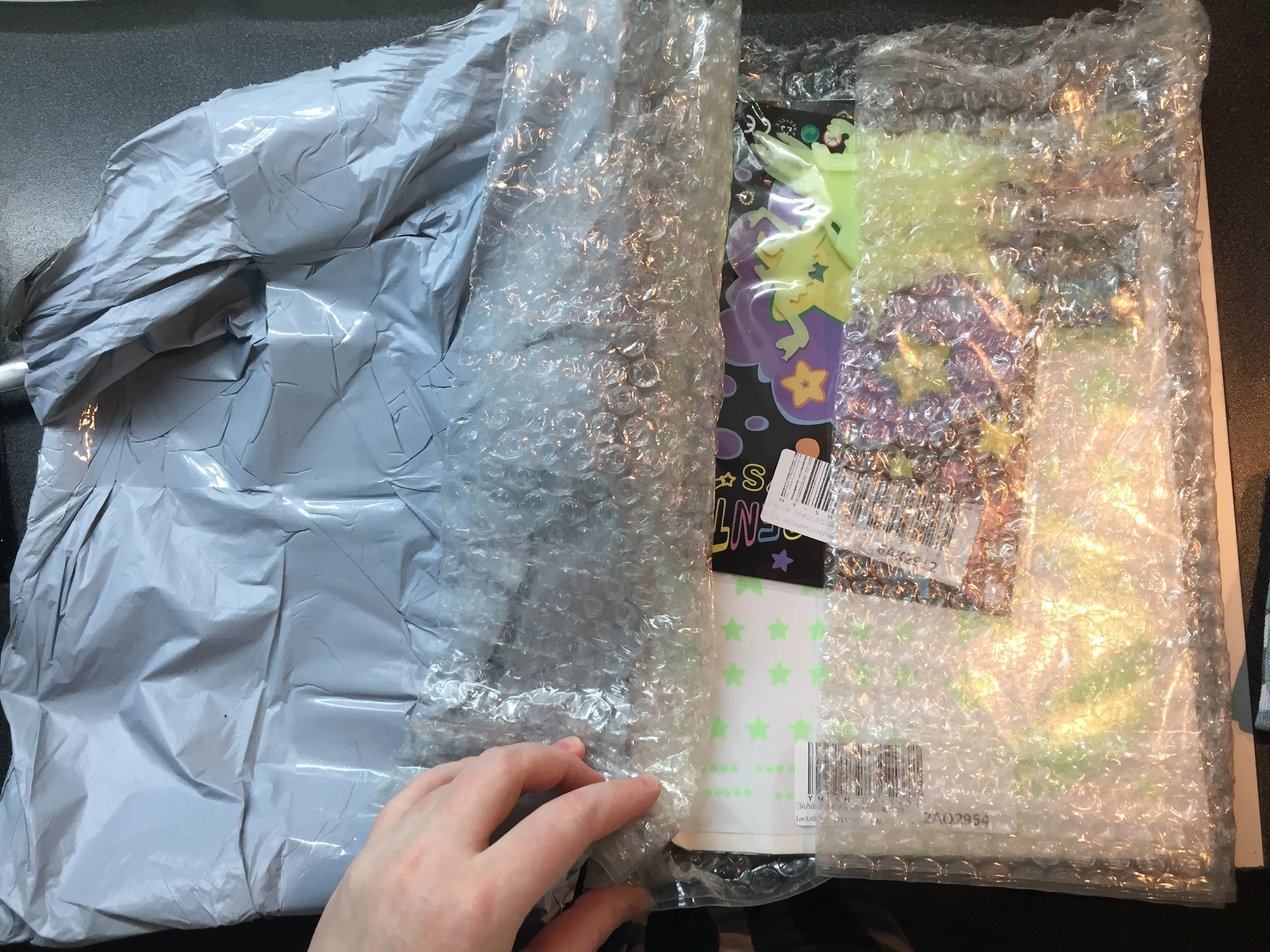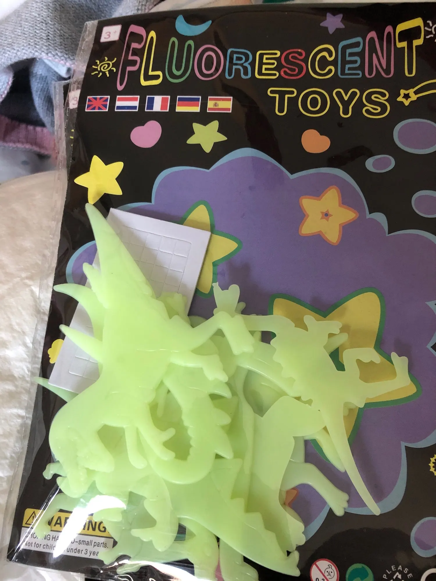Заказ шел супер медленно, уже потеряли надежду получить его. Динозаврики прикольные, в темноте светятся еле-еле, но ребенок доволен.