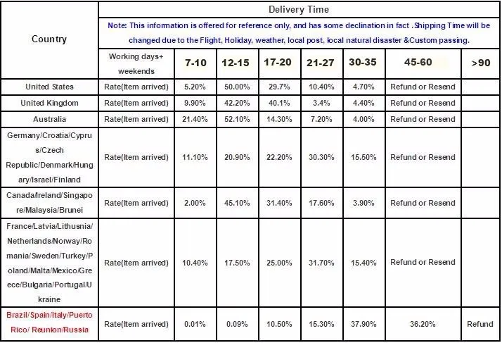 Если ваш заказ очень срочный, пожалуйста, выберите Экспресс-доставку, например, DHL , EMS, FEDEX и т. Д. Потому что Почта Китая срок доставки