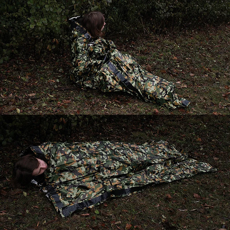 Камуфляжный спасательный аварийный спальный мешок, теплый, водонепроницаемый, майлар, двойная аптечка, аварийное одеяло для кемпинга на открытом воздухе