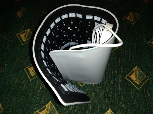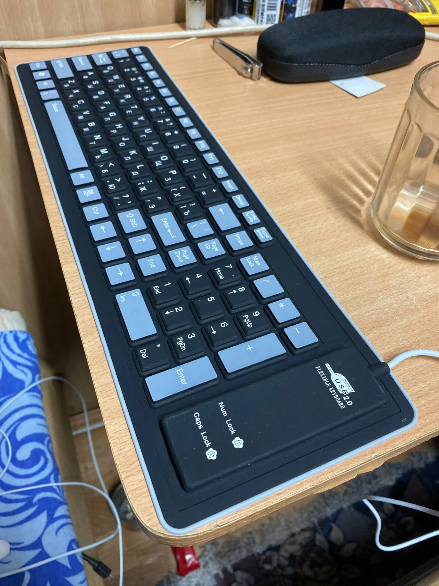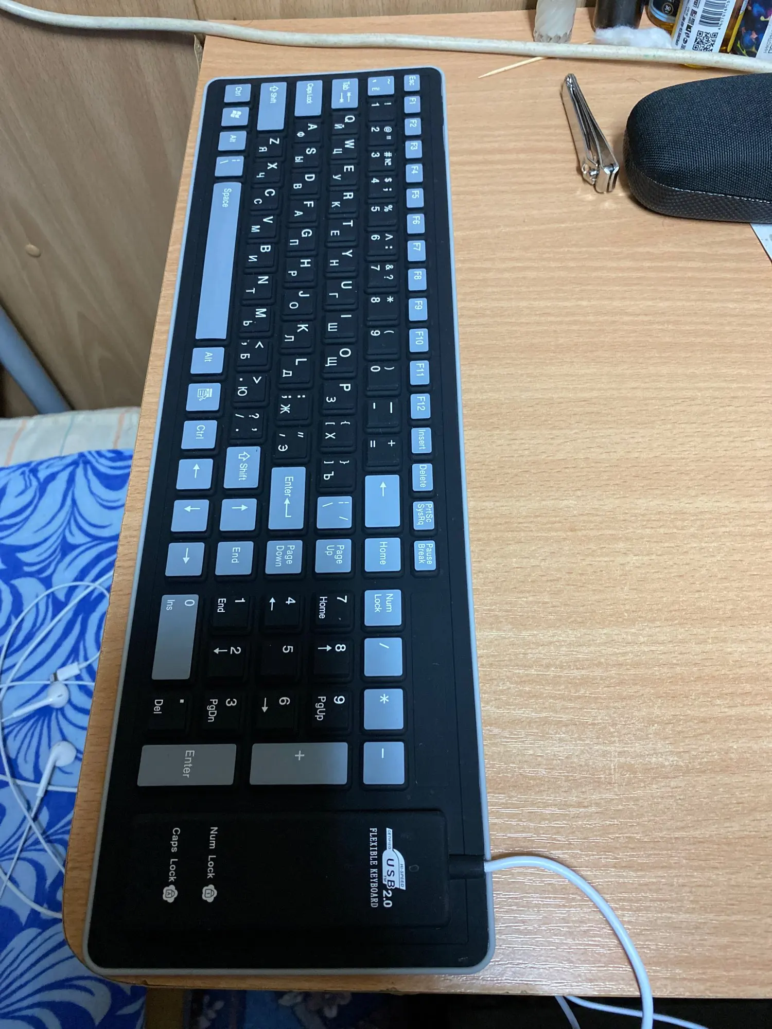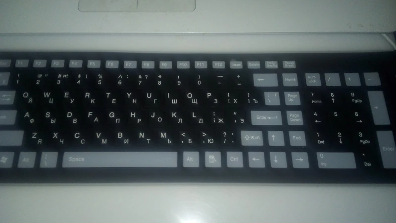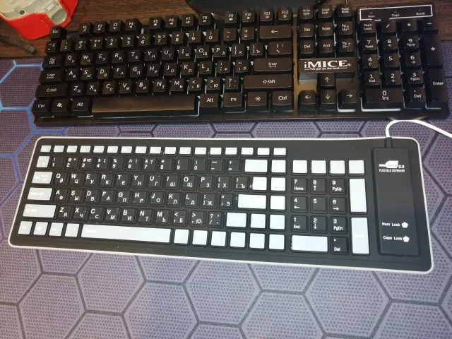 Клавиатура реально гибкая, силиконовые клавиши, водостойкая. При подключении всё работает, просто сначала нужно дать ей немного полежать и распрямиться. Расположение клавиш и их размер немного непривычен, поменьше. Нажатия на клавиши требуют несколько больше усилий. Для тихой работы - эта клавиатура подходит, но потребуется приноровиться. А вот для игр - очень сложно с ней, не совсем подходит.