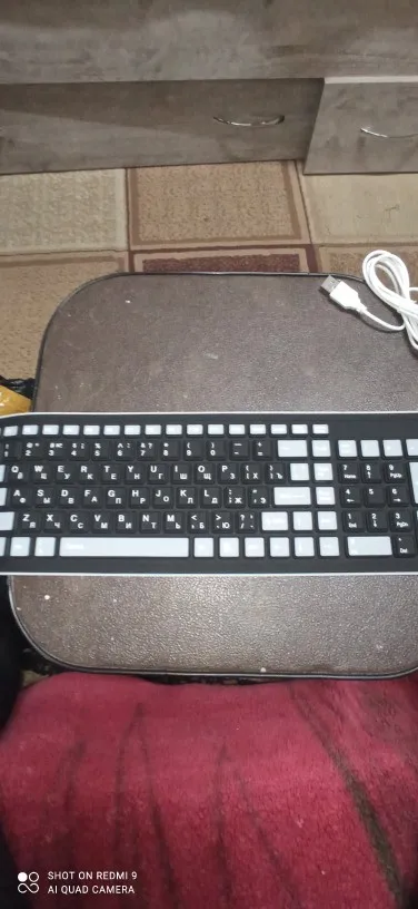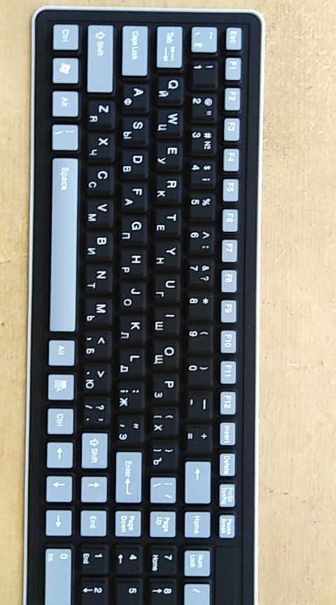 Очень прикольная клавиатура, немного бархатистая на ощупь, без неприятного запаха. Была куплена в подарок, очень понравилась. Непривычно может быть отсутствие щелчка при нажатии клавиш, но клавиатура рабочая, быстро распознаётся и сразу же начинает работать. Ну и её удобно протирать, конечно.
