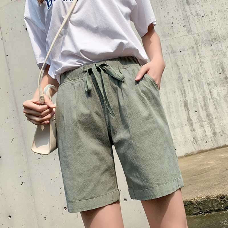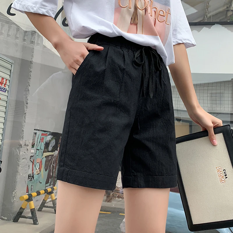 Шорты женские повседневные свободного покроя, хлопково-льняные короткие брюки с завышенной талией, размера плюс, 4xl, 3xl, лето 2018