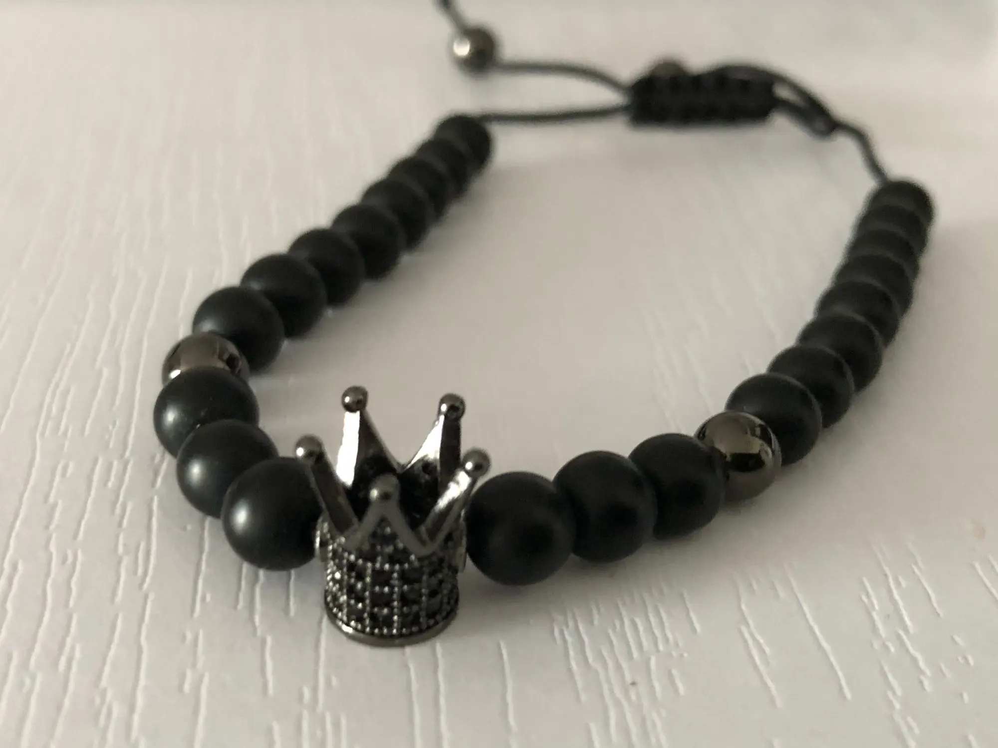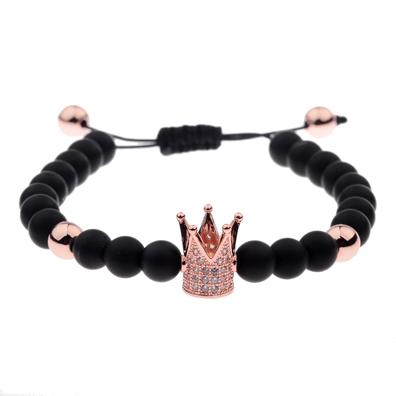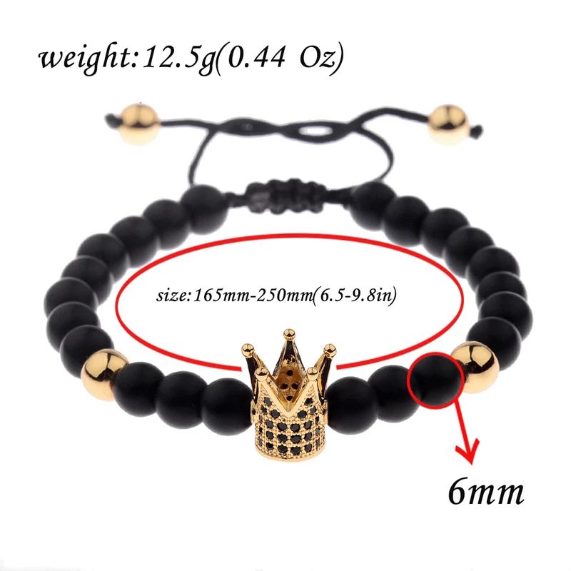 Браслет DOUVEI, 6 мм, с циркониевой короной, мужской, ручной работы, черный матовый браслет для женщин, Прямая поставка ABL007