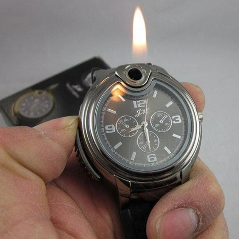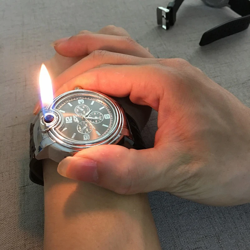 Мужские кварцевые часы, модные, с зажигалкой
