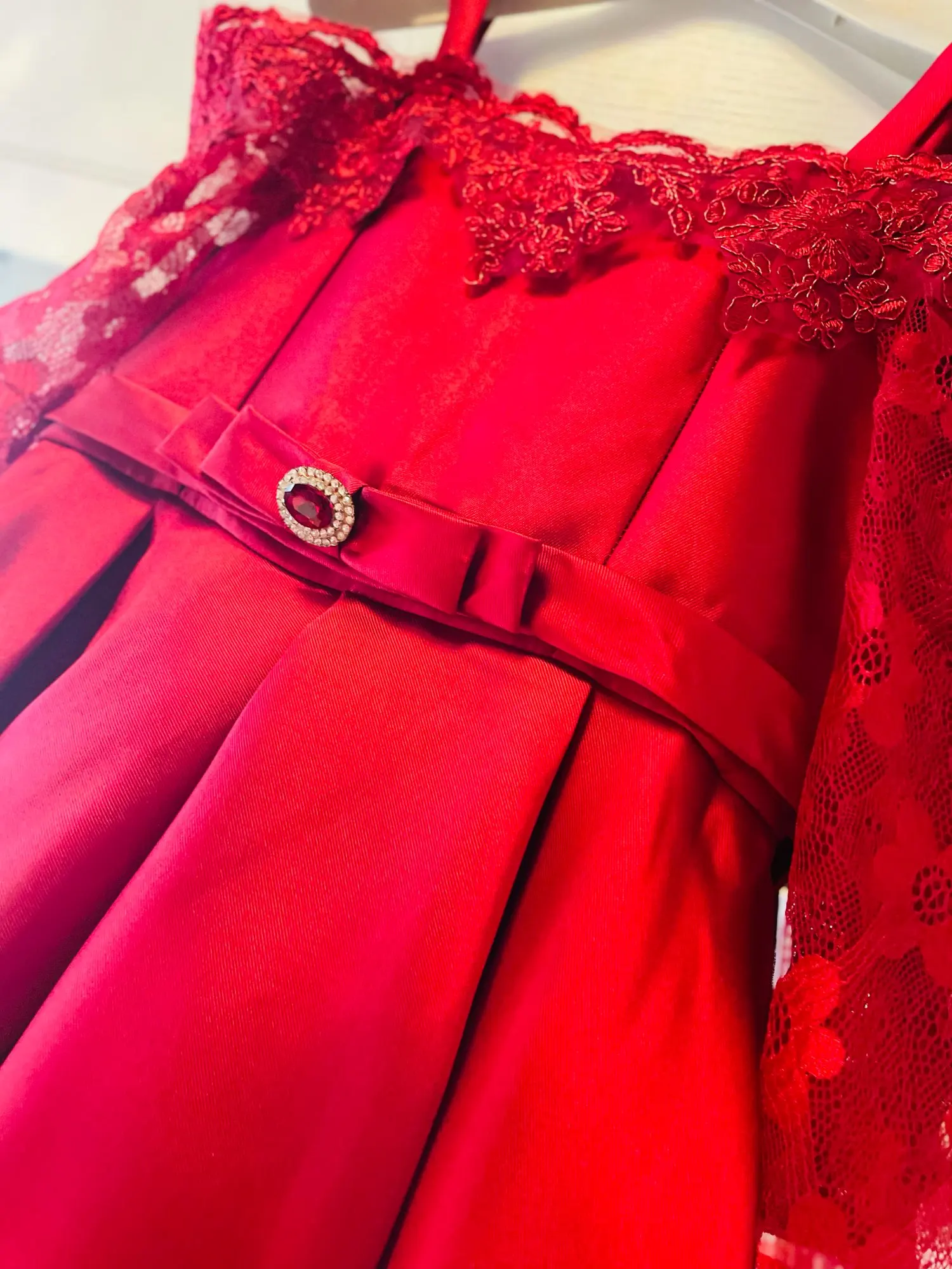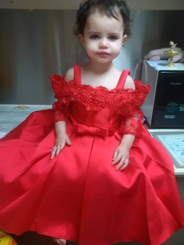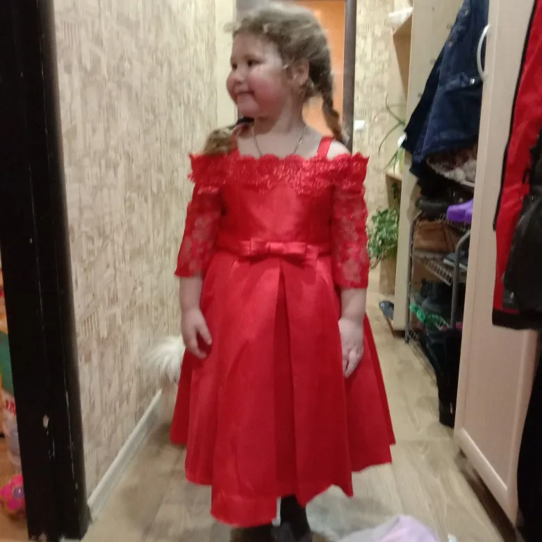 Красивое хорошее качество, моей дочери 5 лет, скоро 6 Красное платье, заказанное в размере 5
