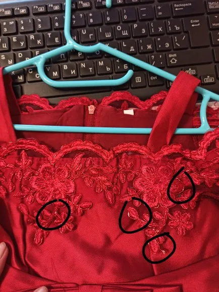 Платье понравилось! Правда сзади слегка неровно пришиты кружева, но не бросается в глаза. Юбка довольно плотная, без глазки и даже без подъюбника неплохо держит форму. Пока что недостатков не выявлено.