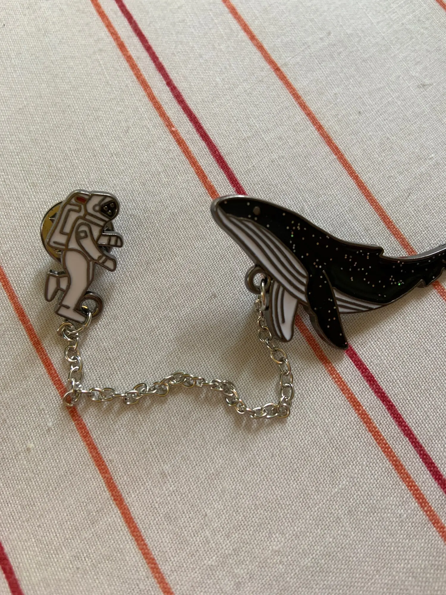Значки для джинсовой куртки, пальто, кепки, рюкзака, с изображением астронавта и Кита, рубашка с пряжкой