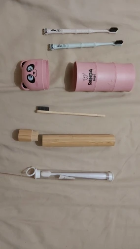 Заказали 3 типа щёток. Мне больше понравились эти. Пенал для щеток большой и красивый). В него спокойно поместится не только щётка но и зубная паста. Сами щетки не большие, по размеру как обычные детские. С продавцом не общалась