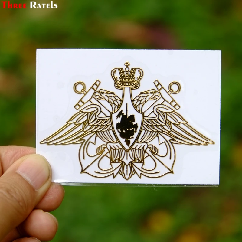 Three Ratels MT-029# 54*80мм Военно-Морской Флот_Российской Федерации двуглавый орел Эмблема никель золотистые металлические наклейки на авто Никелевый сплав наклейки на авто ноутбук