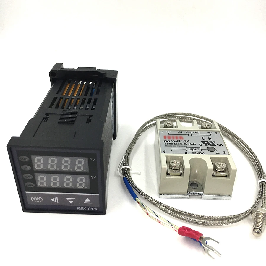 Цифровой термостат REX-C100, регулятор температуры, ПИД-термометр SSR 40DA, твердотельное реле K, термопара, зонд, радиатор