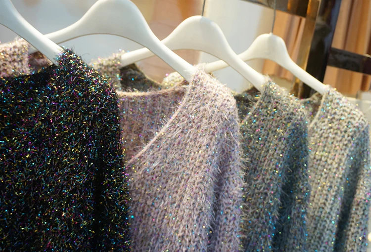 Женский Длинный свитер с блестками Cakucool, вязаный пуловер с золотым люрексом и V-образным вырезом, Свободные корейские прямые базовые свитера, топы для женщин