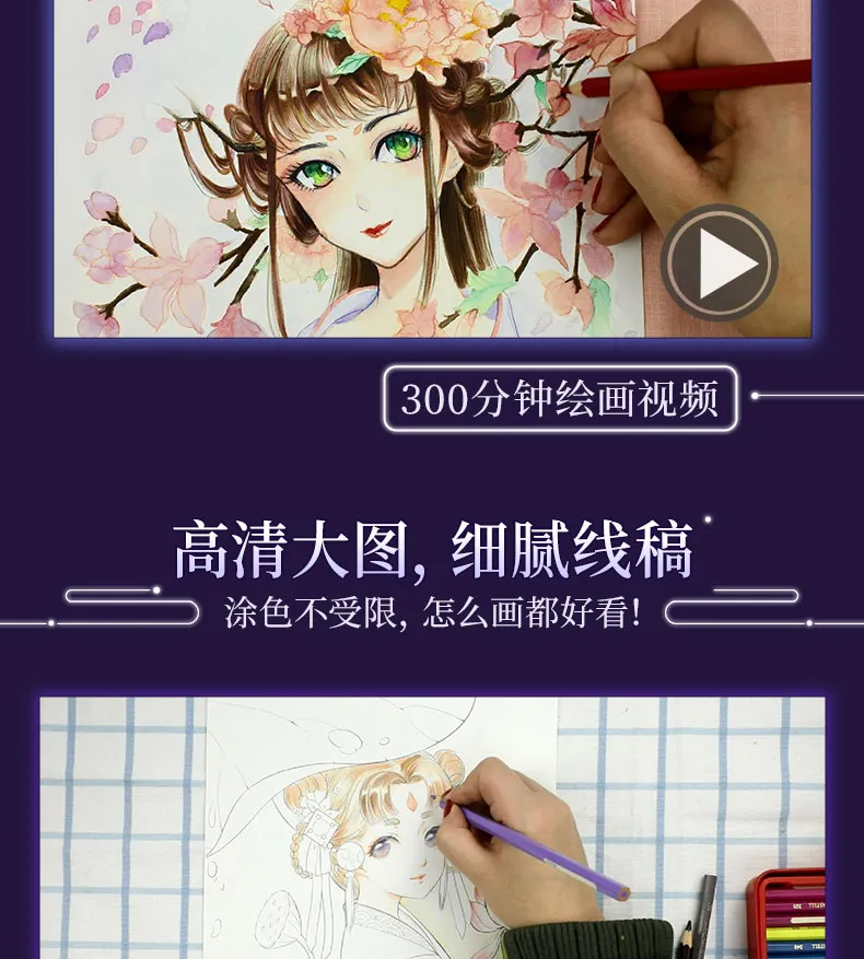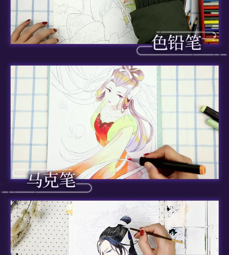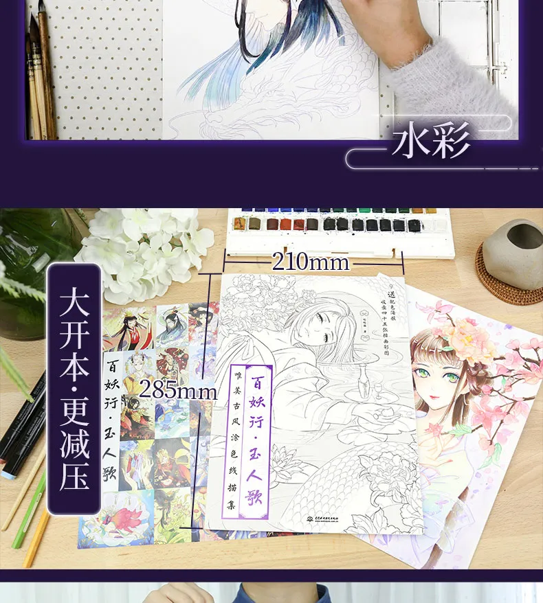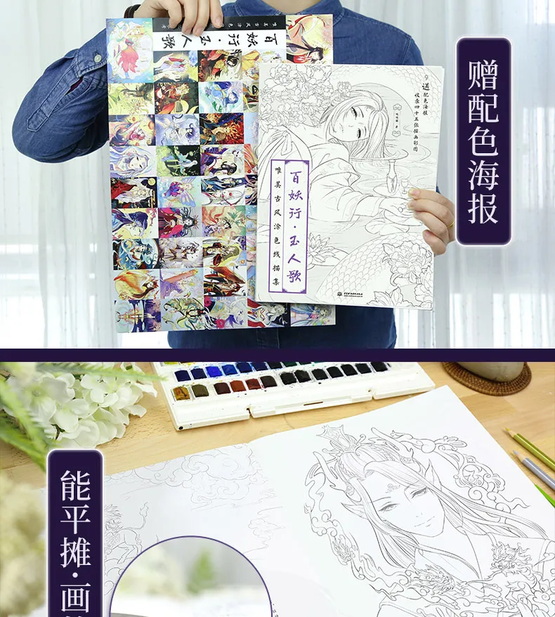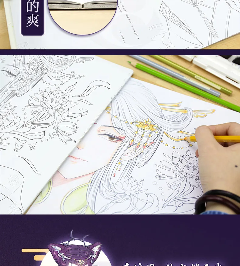 Bai Yao Xing Эстетическая линия Живопись в китайском старинном стиле цветной карандаш Рисование книг сказочная раскраска