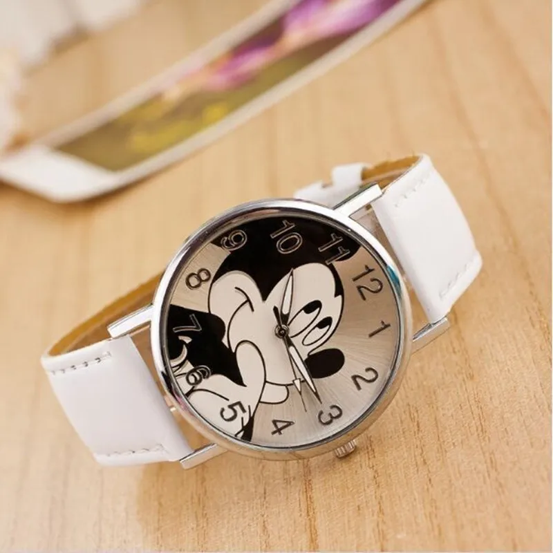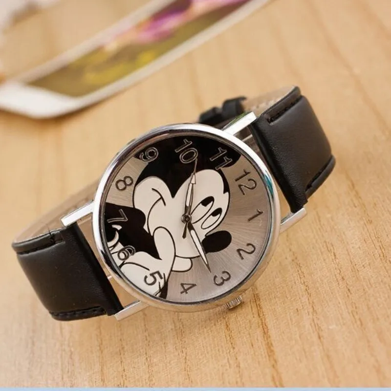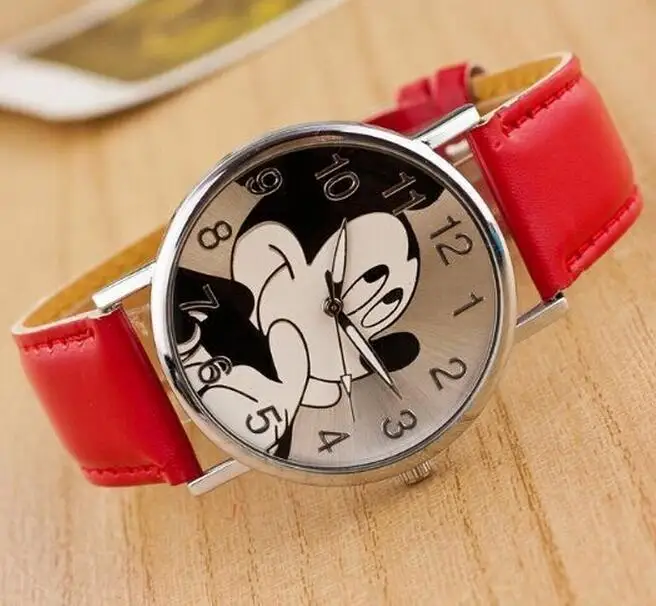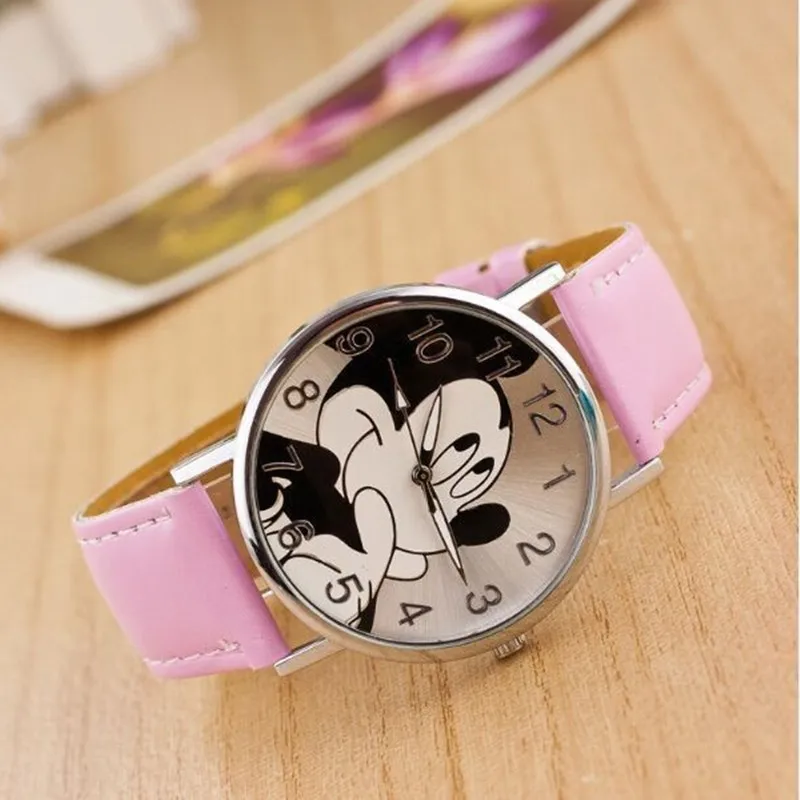 Kobiet zegarka популярные милые детские часы с Микки Маусом модные повседневные женские кварцевые часы кожаные часы для девочек Reloj Muje