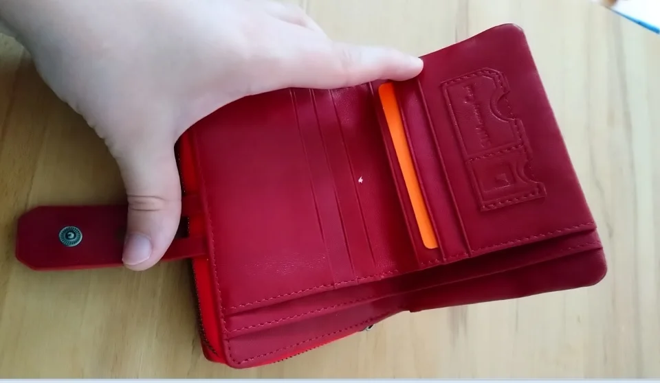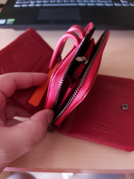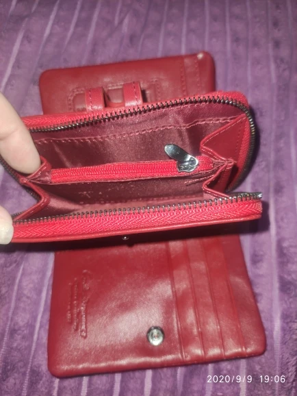 Кошелек пришел быстро, около 3 недель. Все в порядке. Есть некоторый запах. Мягкий, вместительный кошелек. Цвет немного отличается от изображения поставщика. Что мне не понравилось, так это то, что когда вы открываете карман для монет, некоторые монеты выпадают-мне всегда нужно держать одну руку вниз, чтобы поймать эти некоторые монеты.