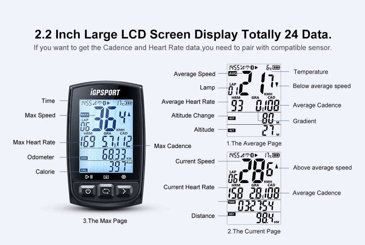 I GPS-порт GPS велосипедный компьютер большой экран 2,2 дюйма W ANT...