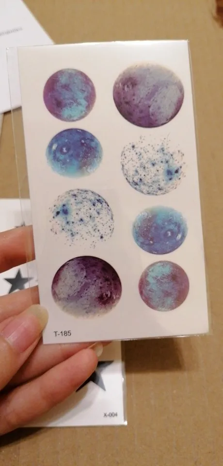 Маленькие временные татуировки-наклейки с галактикой, звездами, луной, круглые, женские, имитация флэш-татуировки, мужские, боди-арт, водонепроницаемые татуировки для детей