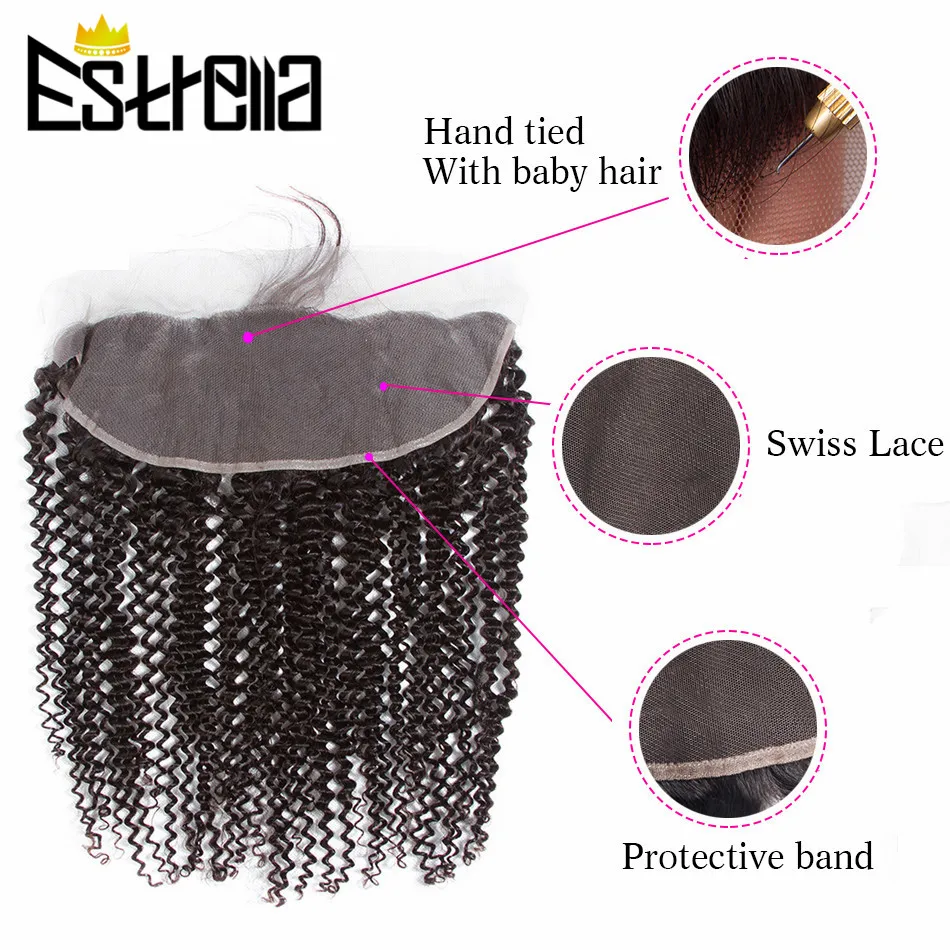 Кудрявые кудрявые волосы, 1 шт., 13 х4, на фронтальной сетке, бразильские, 100% натуральные волосы, связанные вручную, естественного цвета