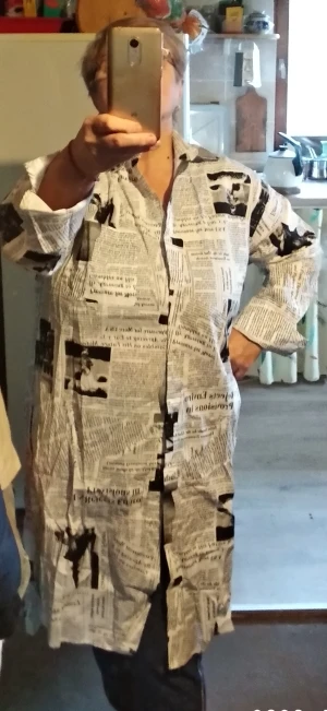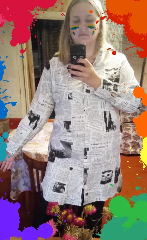 Мило! Большой размер. Получите много комплиментов. Подходит как Мужская рубашка большого размера. Немного жесткий, но это нормально