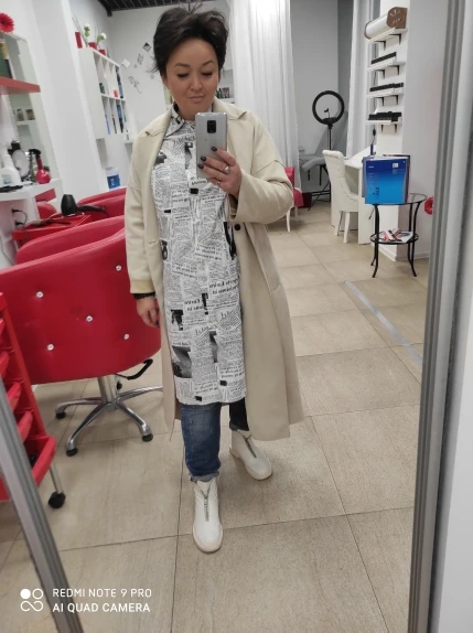 Очень стильная и лёгкая рубашка! На размер 50 смотрится хорошо, особенно с поясом