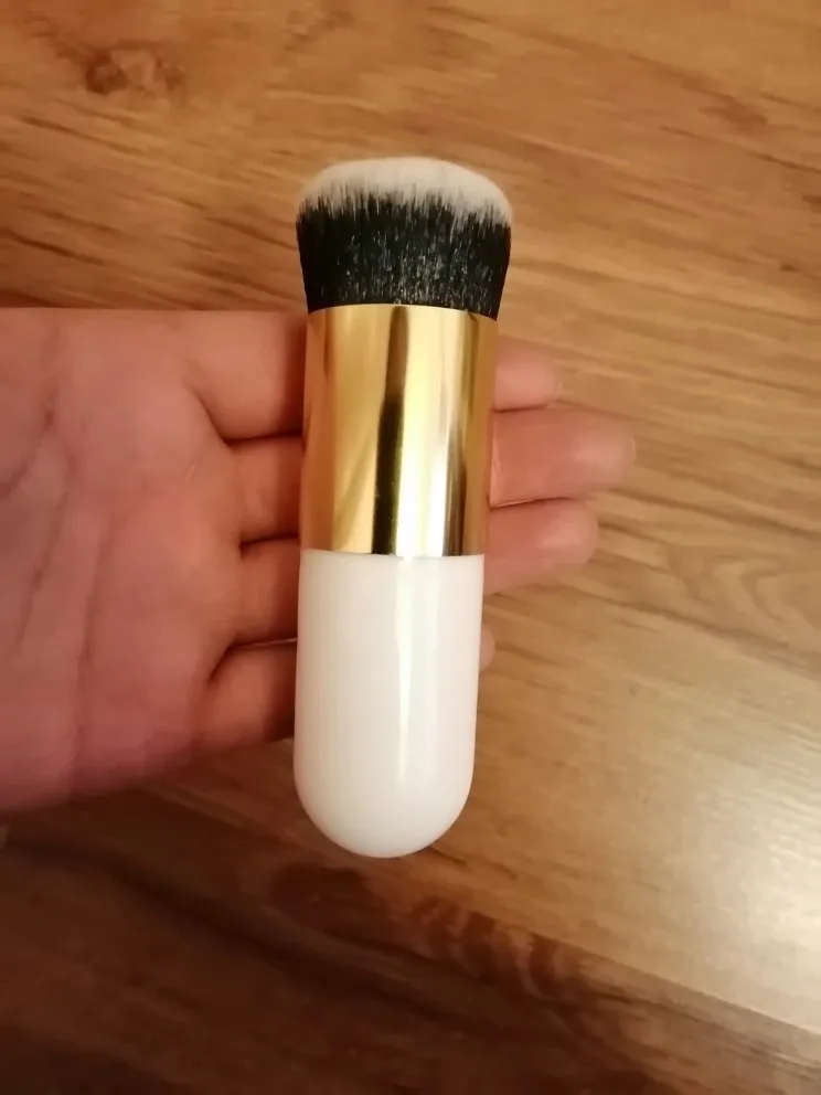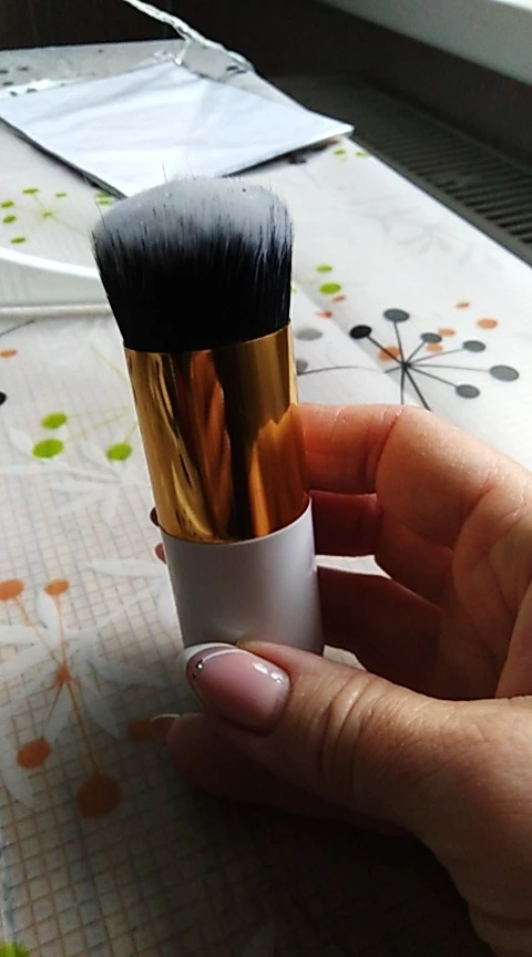 Отличная кисть для нанесения тонального крема. Мягкая, ворсинки не лезут. Удобно держать в руке, стильный дизайн. Товаром очень довольна, тем более по приятной цене 96р. Покупайте, девчата! Продавцу - СПАСИБО за качественный товар.