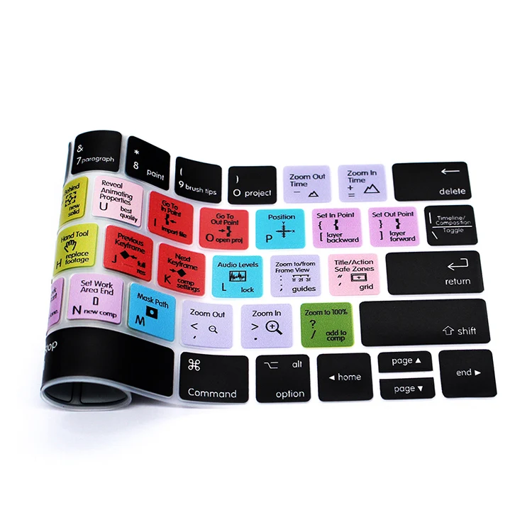 Силиконовая накладка на клавиатуру HRH Adobe After Effect, защитный чехол для клавиатуры с горячими клавишами для Mac Pro, 13 дюймов, 15 дюймов, A1989, A1990, A1706, A1707, A2159