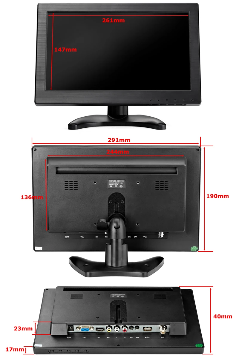Мониторы TFT LCD HD 11,6 дюйма, разрешение 1366x768, HDMI VGA BNC AV вход для компьютера, DSLR, DVD, ПК, камеры видеонаблюдения с динамиком