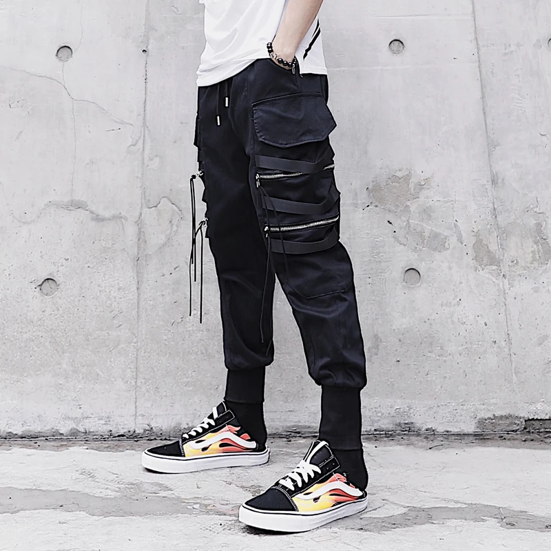 Мужские повседневные шаровары, уличные хип-хоп мужские зауженные брюки-карго с большими карманами, байкерские штаны, спортивные штаны для бега