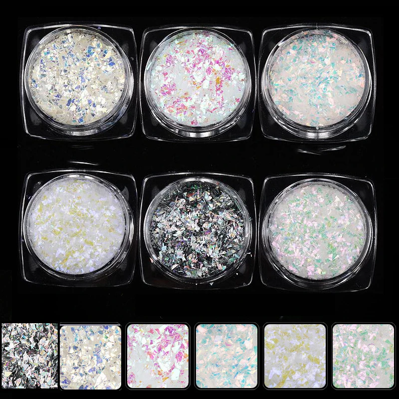 Голографические хлопья ногтей голографический порошок пигмент хром Единорог Голограмма лазерная пыль-6 цветов разбитое стекло блестки