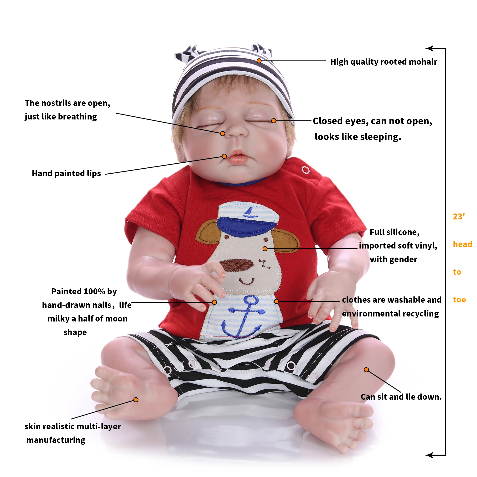 Симпатичная 23 дюймовая Спящая кукла новорожденный малыш тканевое тело виниловая Реалистичная кукла новорожденный мальчик Playmates детские подарки на день рождения