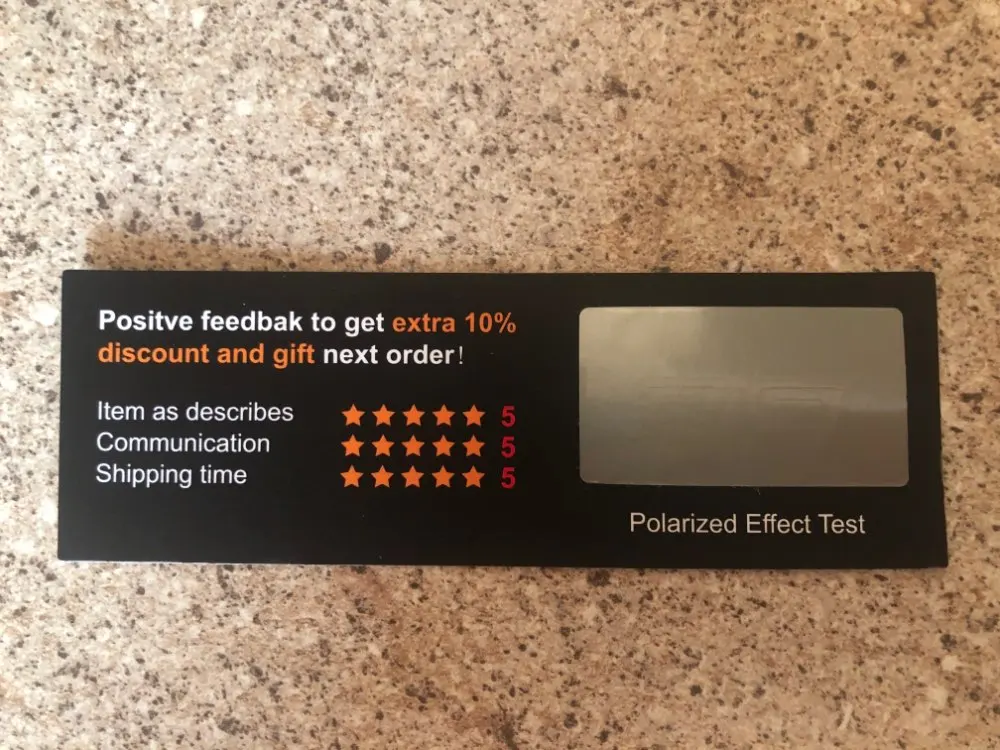 Посылку доставили быстро. Упаковка очень надежная. Внутри много аксессуаров-мешочек, тряпочка для протирки, картинка для определения поляризации, очень красивый мягкий чехол. Поляризация работает. Рекомендую продавца и магазин.