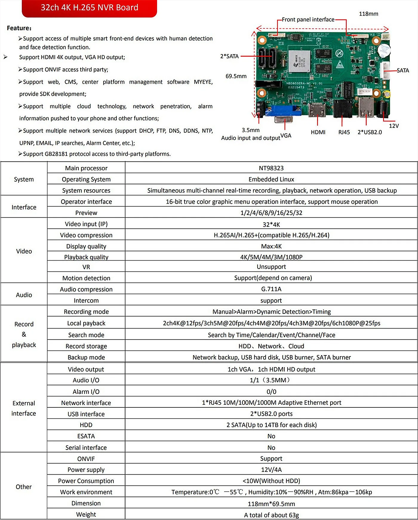 Сетевой цифровой видеорегистратор Vidoe 32*4K, H.265, NVR, рекордер, Интеллектуальный анализатор Max 2*12T, ONVIF2.4, VMS XMEYE, P2P, RTSP, обнаружение лиц