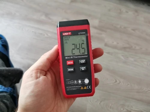 Пришло быстро очень, простейшие вещи измеряет четко, главное понимать смысл пятнышка которым измеряет прибор, и за эти деньги нельзя настроить коэффициент отражения. Батареек не было я не растроился , заранее знал. Прибором доволен. Брал для сервисного обслуживания котлов.