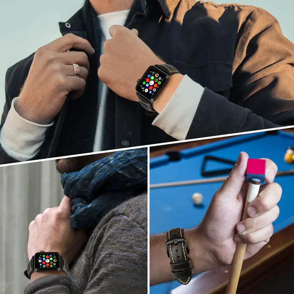 Ремешок из натуральной кожи для Apple Watch Series 5 4 3 2 1, 42 мм...