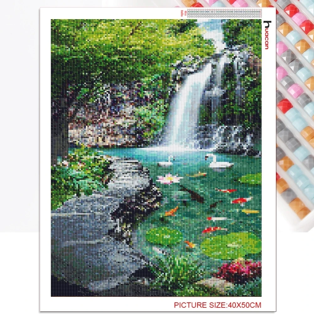 Алмазная живопись Huacan, пейзаж, алмазная вышивка, водопад, картины для стразы, мозаика, вышивка крестиком 5D, сделай сам, домашний декор