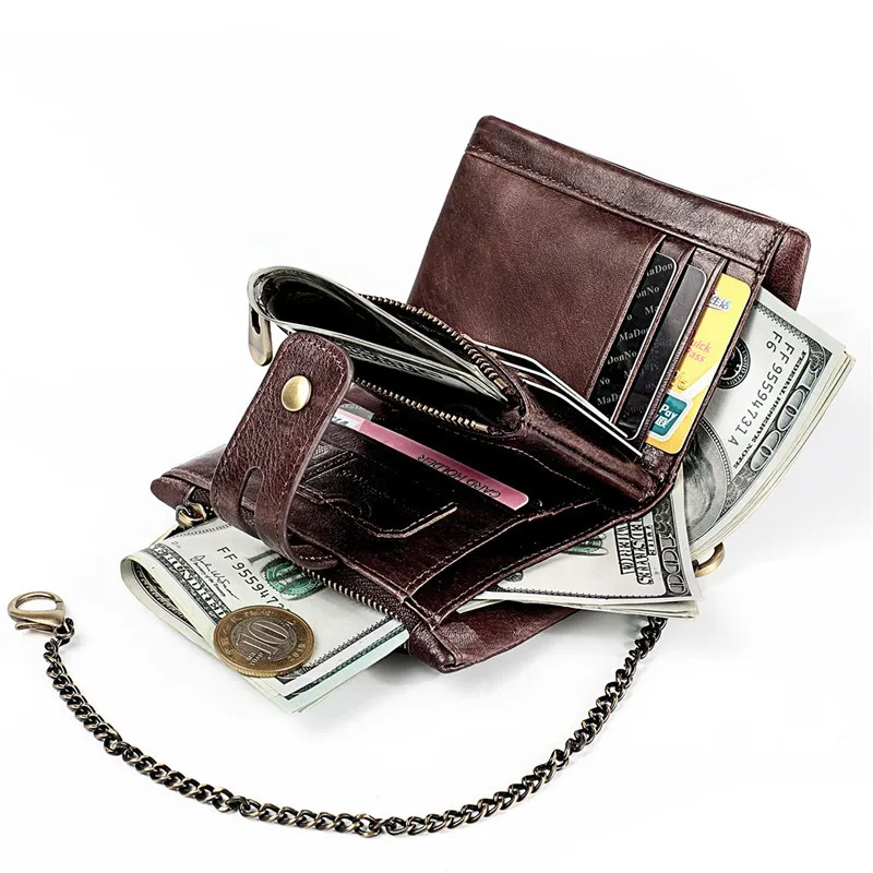 Мужской кошелек, из натуральной кожи, с отделением для монет и карт
