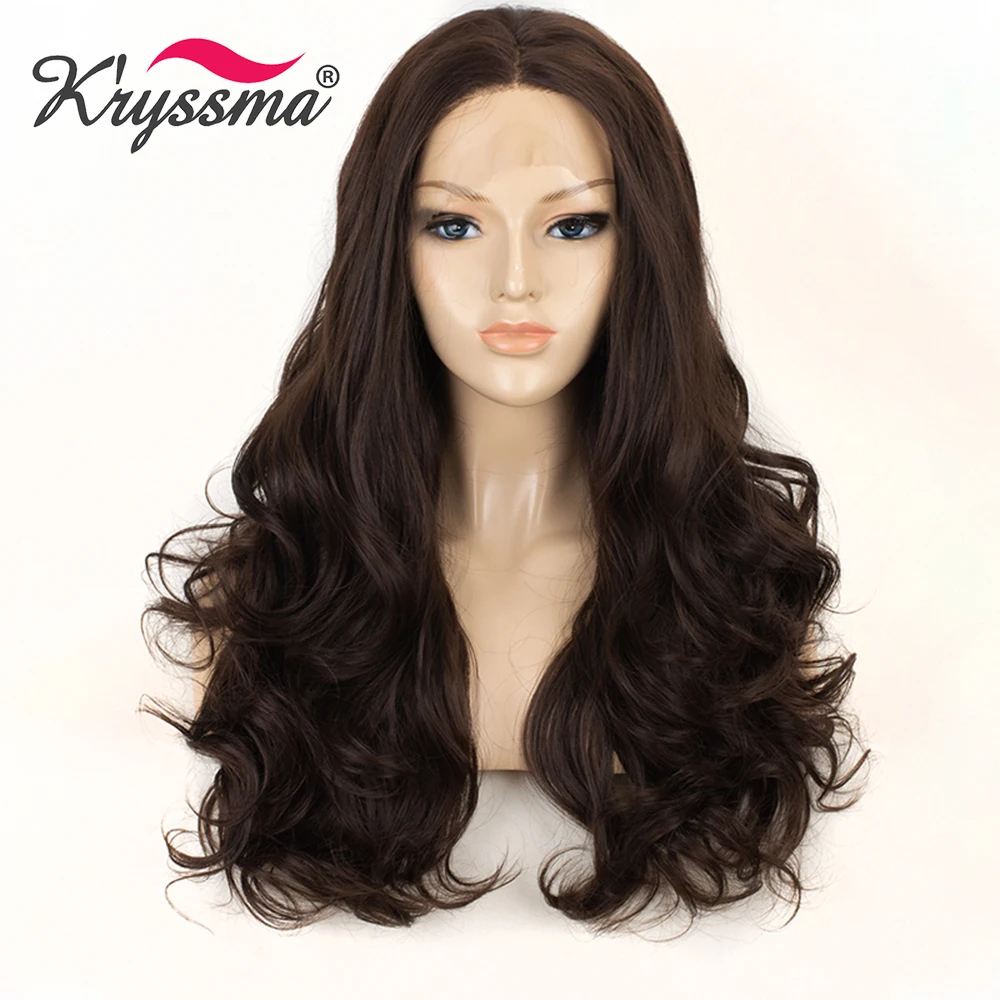 Парик Kryssma темно-коричневый, длинные волнистые синтетические парики, парики для косплея для женщин, парик из термостойкого волокна для хэллоуивечерние