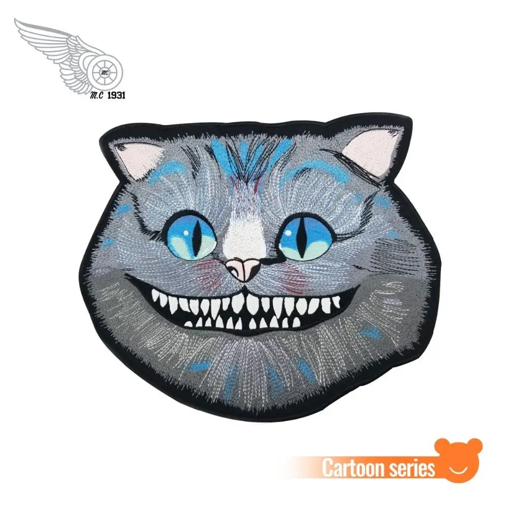 Нашивка с вышивкой в виде Чеширского кота, большого размера, Ширина 28 см, для полной спины куртки, водитель, байкер