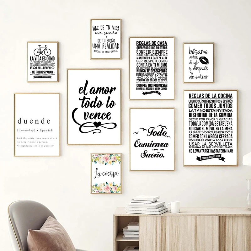 Испанская положительная Цитата холст художественный принт и постер, современный черный и белый холст Картина Настенная картина домашний декор