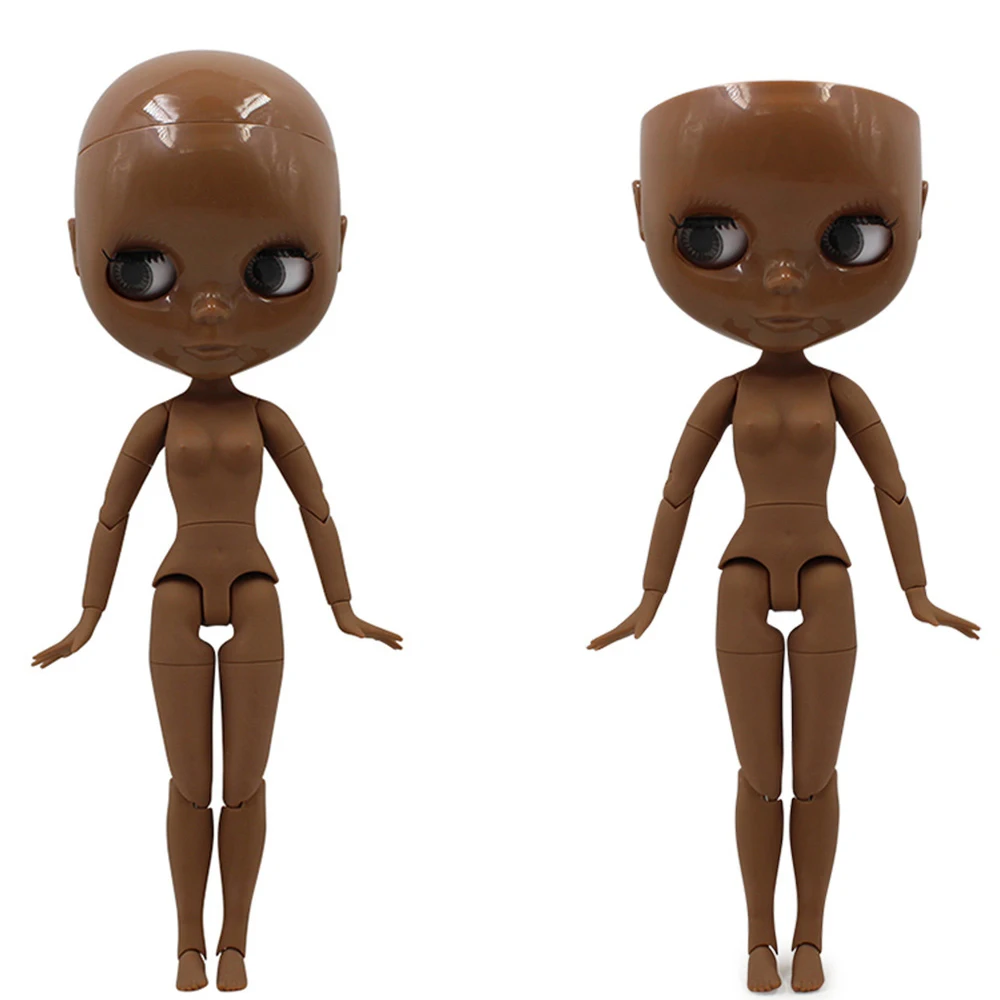 Супер темная кожа Blyth резиновые и суставы тела с кожей головы без парика без макияжа, для настройки