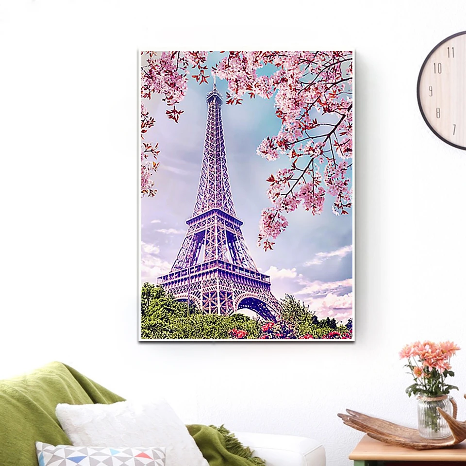 Алмазная 5D картина AZQSD сделай сам, вышивка с Парижской башней, пейзаж, мозаика из бисера, домашний декор