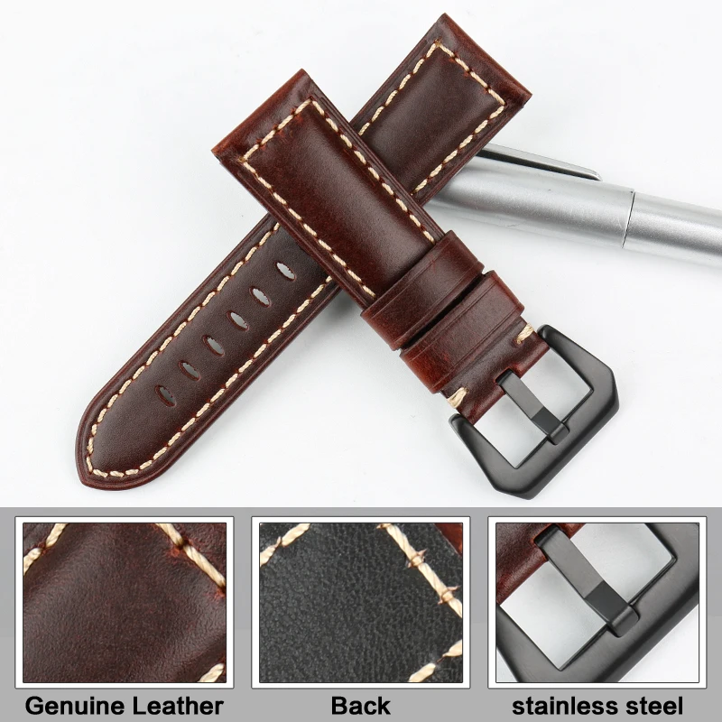 Ремешок MAIKES из натуральной кожи для наручных часов, Аксессуары для часов seiko, с черной пряжкой, браслеты 22 мм 24 мм 26 мм