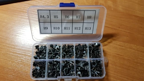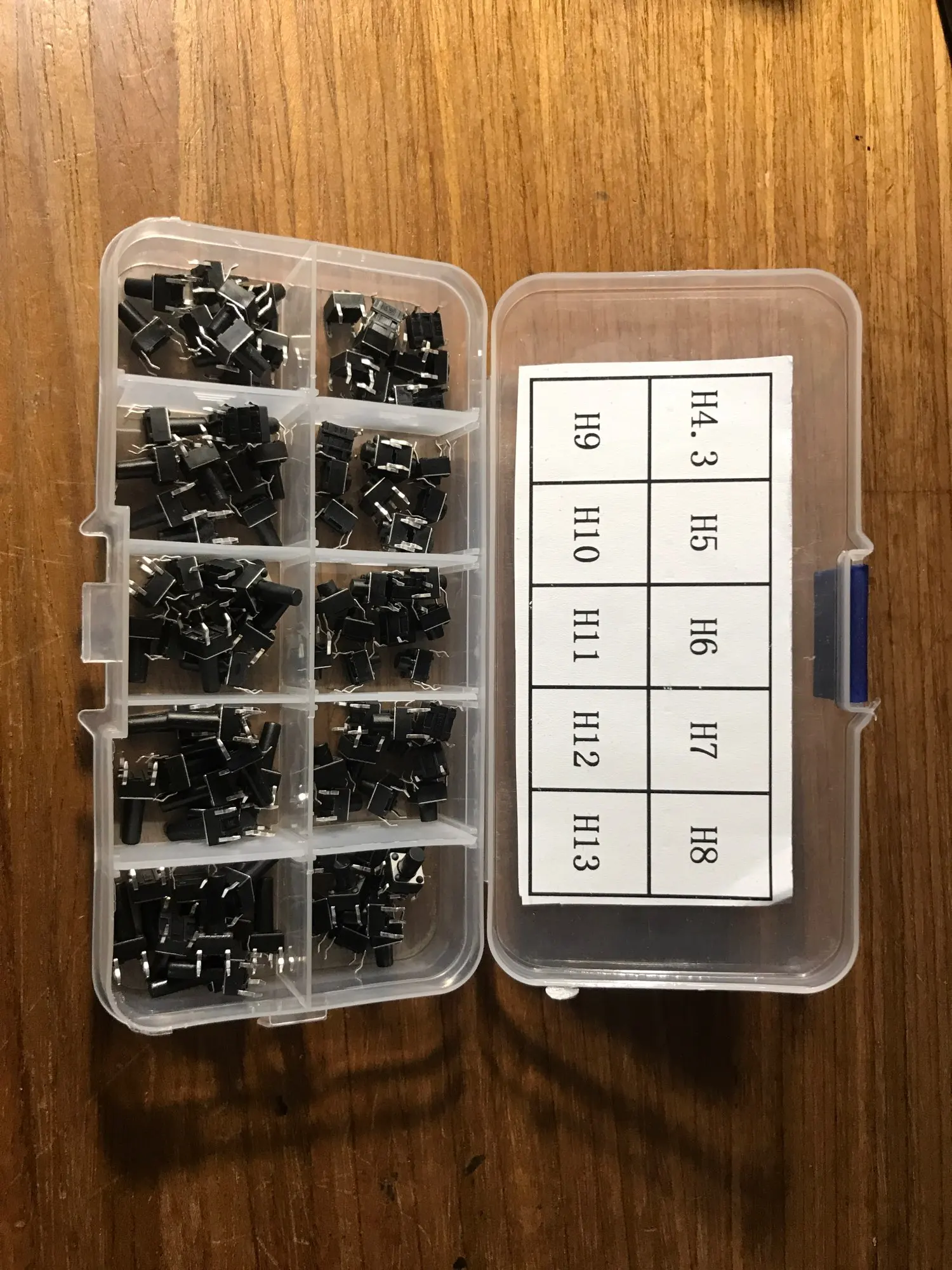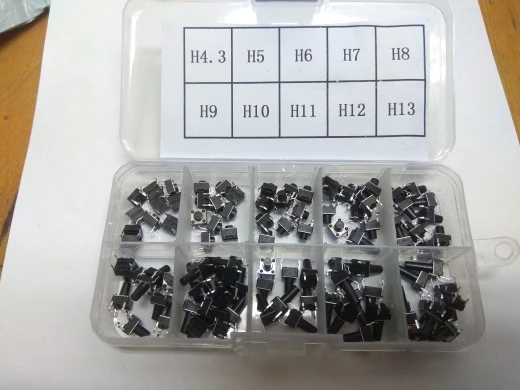 Пересчитал в 10 ячейках - все кнопки на месте по 10штук. размеры от 4,3-13мм и уточнение по размерам, если берём размер 13мм - это размер не самого пиптика а вместе с базой кнопки - общий размер. Толщина одной базы 3мм, т.е. 13-3=10мм сам пиптик.