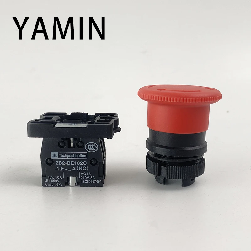 XB2-ES542 Red NC 22 мм, Аварийная остановка, поворотная Блокировка грибов, кнопочный переключатель управления, электрический стартер 220 В, 10 А
