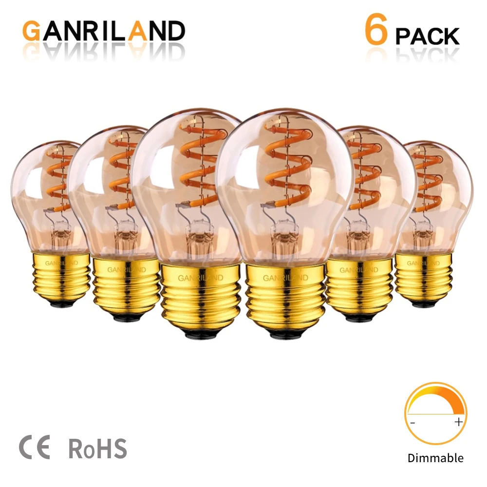 GANRILAND золотой оттенок G45 спираль светодиодный Лампа накаливания Эдисона гибкие светодиодные лампы 3W 2200K E26 E27 база декоративный подвесной светильник с регулируемой яркостью, светодиодныйОписание товара: