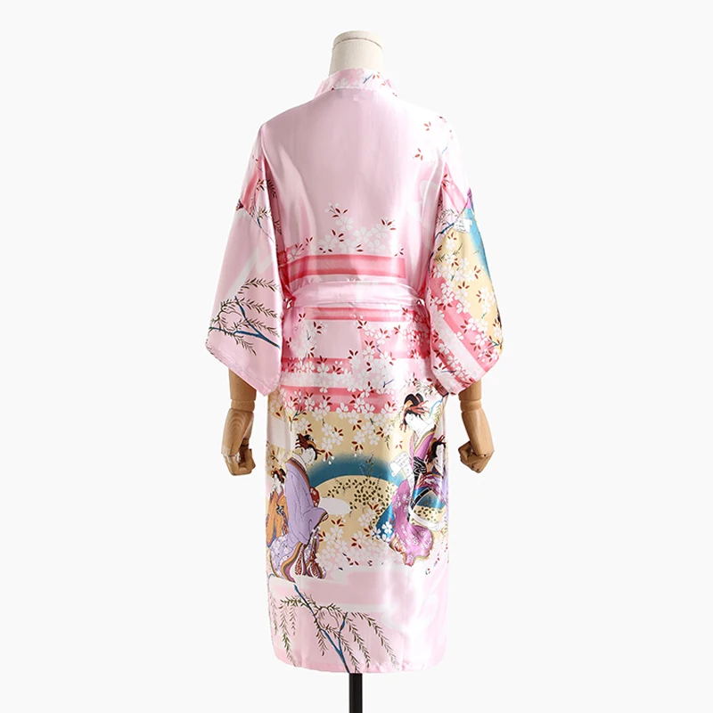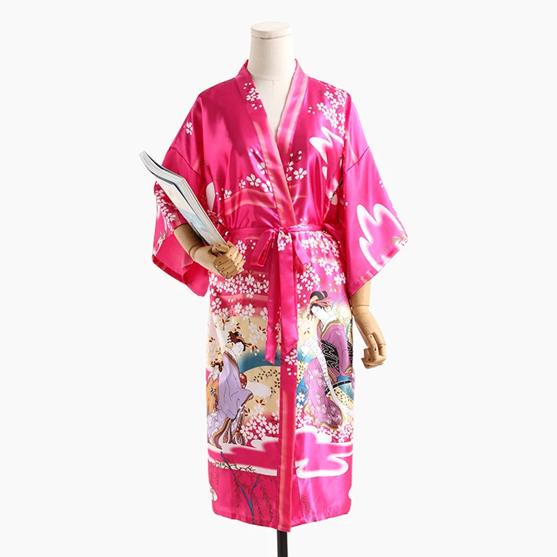 Женский шелковый халат, летнее кимоно с цветочным принтом