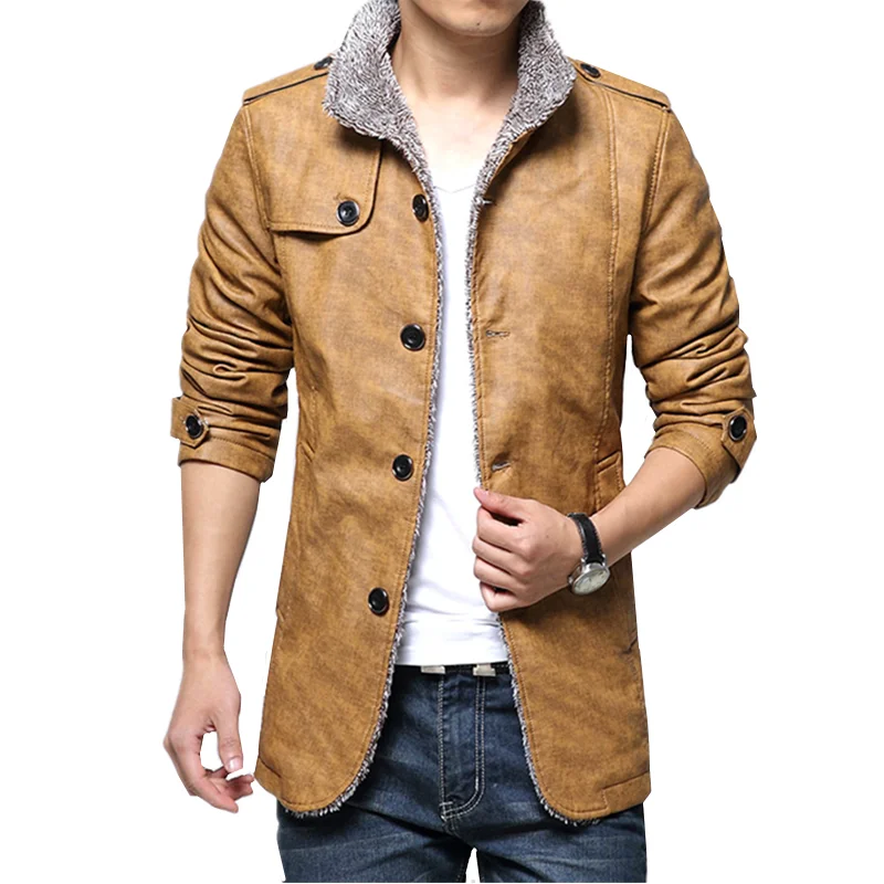 Осенне-зимняя однотонная бархатная мужская куртка из искусственной кожи с длинными рукавами модные деловые повседневные мужские пальто серого цвета хаки